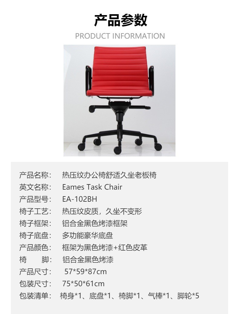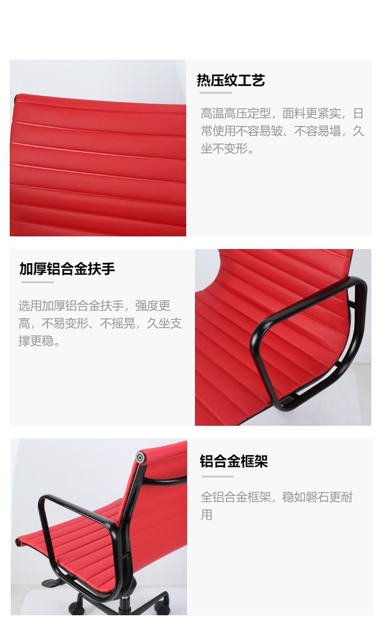 Eames Office Chair — 伊姆斯办公椅;Eames Desk Chair — 伊姆斯电脑椅;Eames Executive Chair — 伊姆斯老板椅;Eames Swivel Chair — 伊姆斯旋转椅;Eames Task Chair — 伊姆斯职员椅;Eames Aluminum Chair — 伊姆斯铝合金椅;Eames Replica Chair — 伊姆斯复刻椅;Ergonomic Eames Chair — 人体工学伊姆斯椅;Mid Century Modern Chair — 中世纪现代椅;Leather Office Chair — 皮质办公椅;High Back Office Chair — 高背办公椅;Low Back Desk Chair — 低背电脑椅;Conference Chair — 会议椅;Manager Chair — 经理椅;Comfortable Office Chair — 舒适久坐办公椅;Heavy Duty Office Chair — 加固承重办公椅;Modern Office Chair — 现代简约办公椅;Adjustable Swivel Chair — 升降旋转椅;Premium Office Chair — 高档办公椅;Eames Style Chair — 伊姆斯风格椅